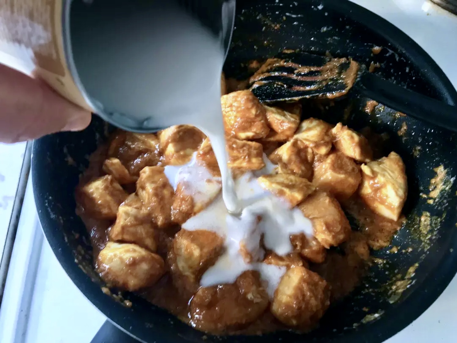 Dolej pozostałą część mleczka kokosowego i wymieszaj.