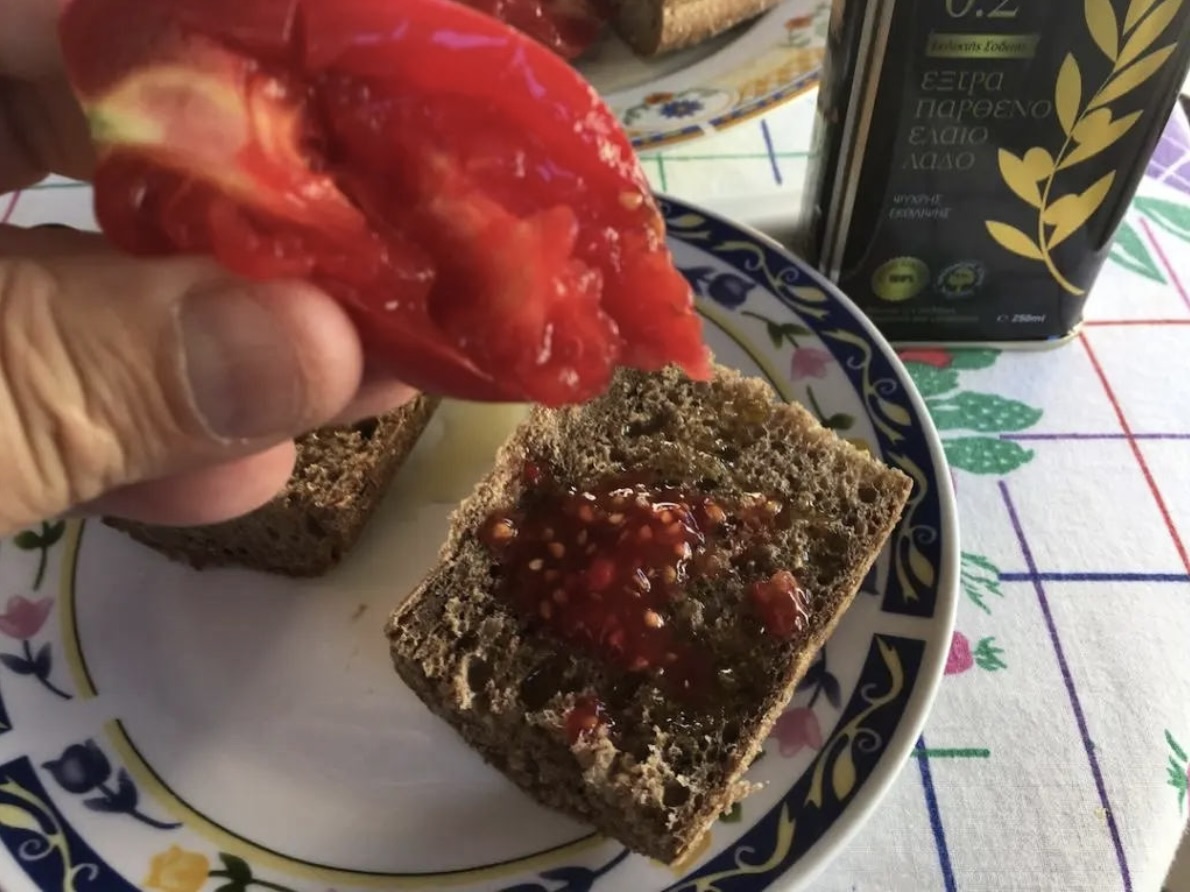 1 świeża bagietka (lub jęczmienne sucharki, tzw. paximadia)
