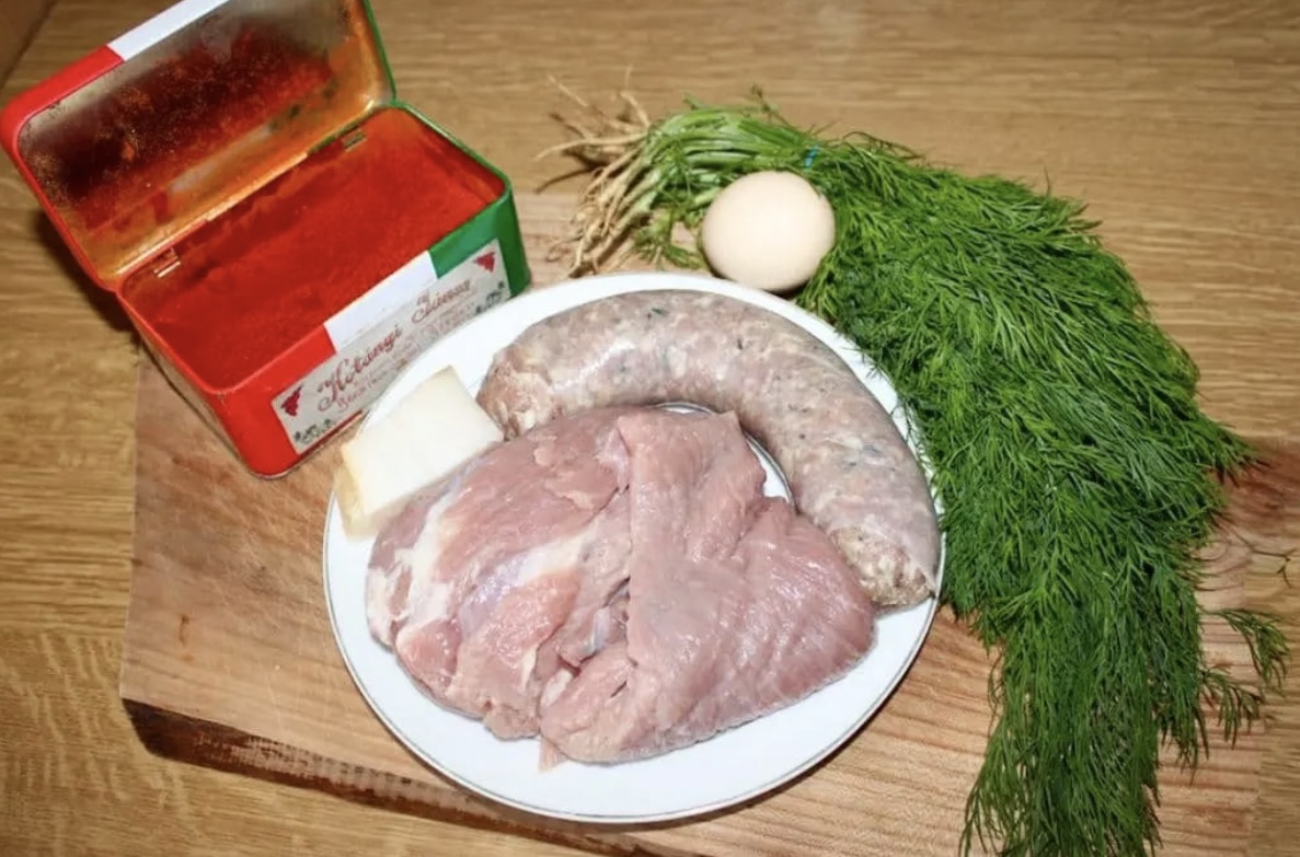 Wyjmij mięso z jelita kiełbasy i pokrój je w grubą kostkę. Słoninę również pokrój w kawałki lub grubą kostkę.
