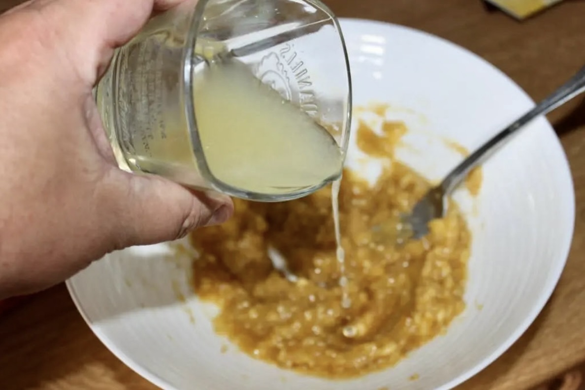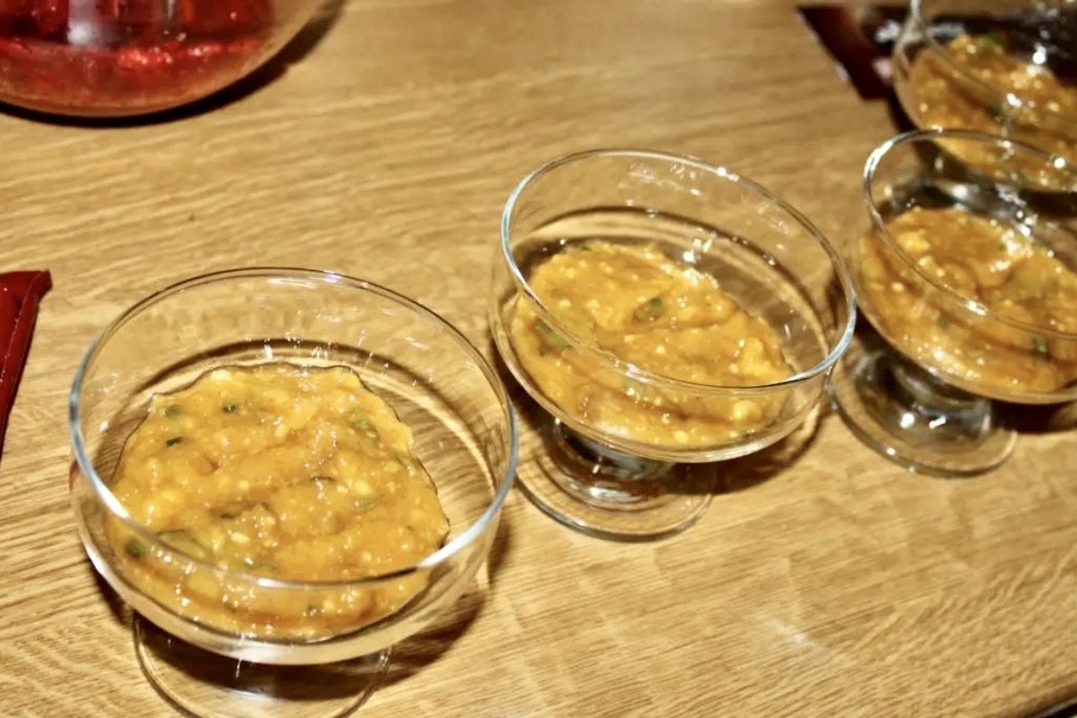 Wymieszaj dokładnie. Mus powinien być słodki, lekko pikantny i orzeźwiający. Odstaw go na bok.