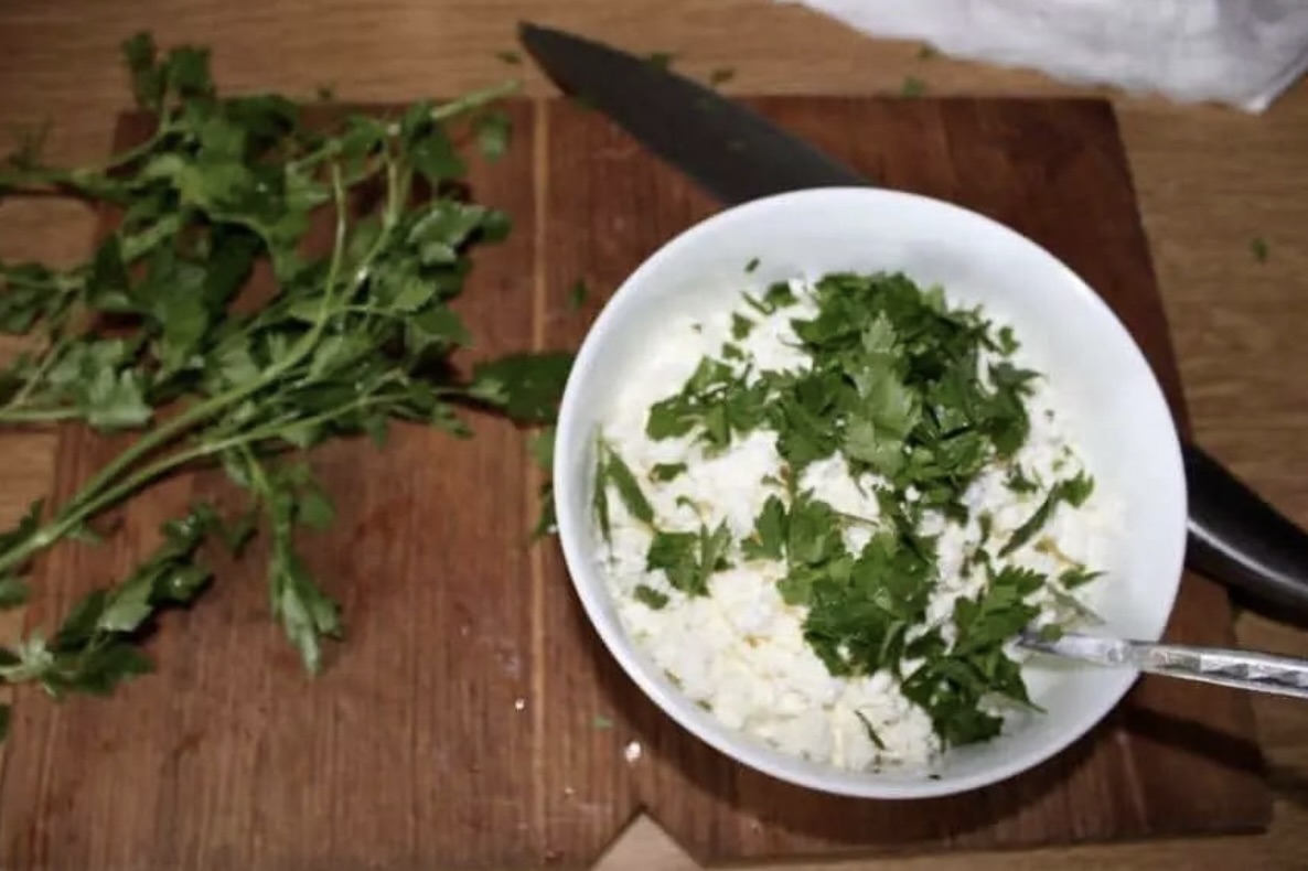 Natka pietruszki: spora garść (można zastąpić koperkiem, zwłaszcza jeśli podajesz dip do ryby)