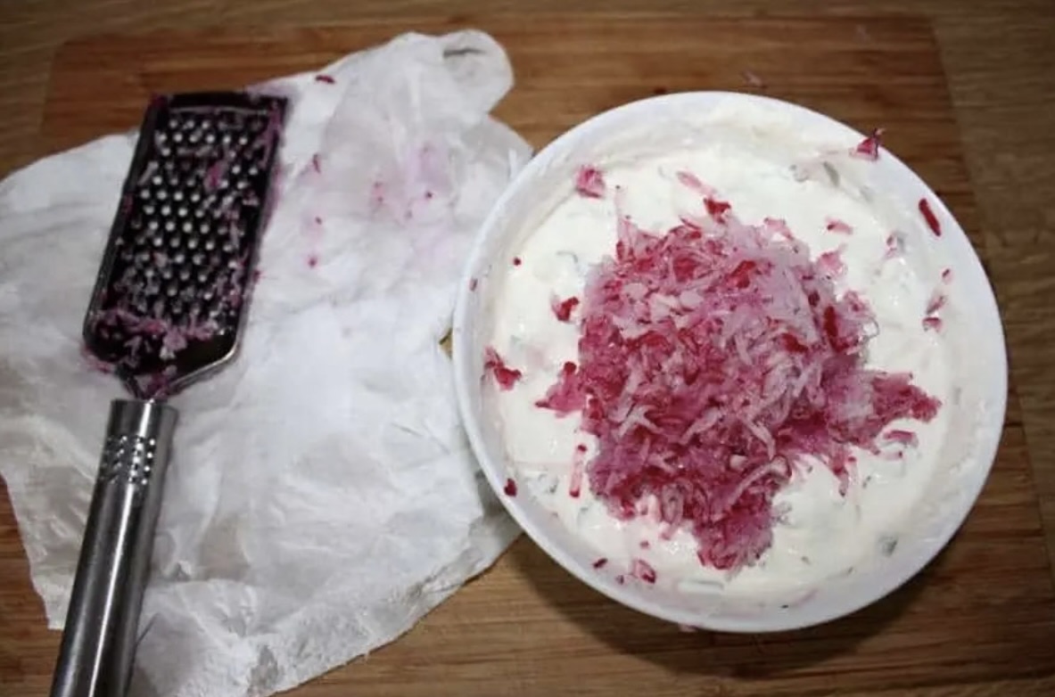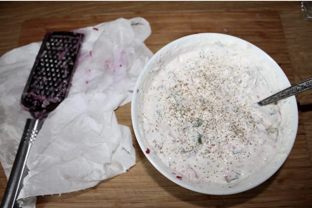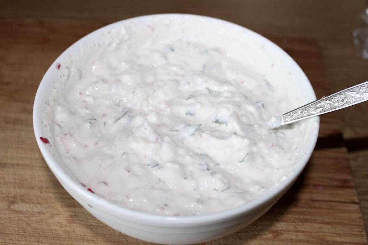 Dodatki: Dodaj posiekaną natkę pietruszki. Kilka rzodkiewek zetrzyj na drobnych oczkach tarki i dodaj do reszty składników (rzodkiewka wyostrzy smak sosu).