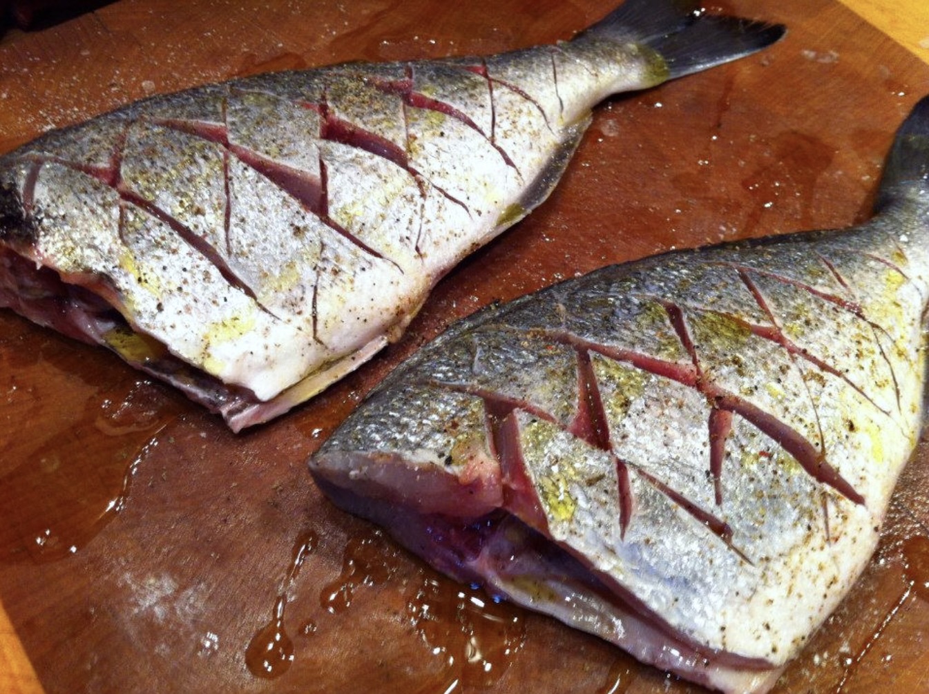 Posól, popieprz i skrop oliwą extra vergine. Dobrze wetrzyj przyprawy w rybę.