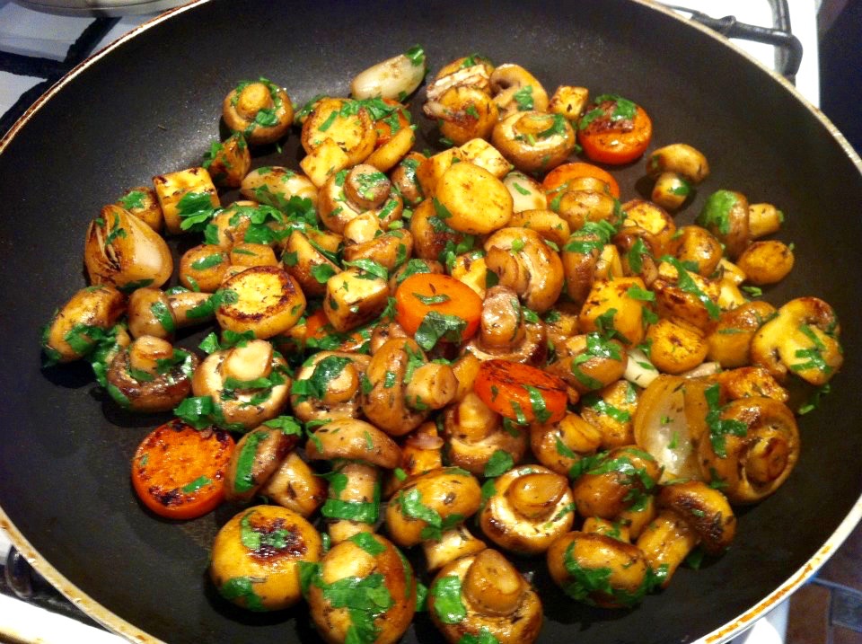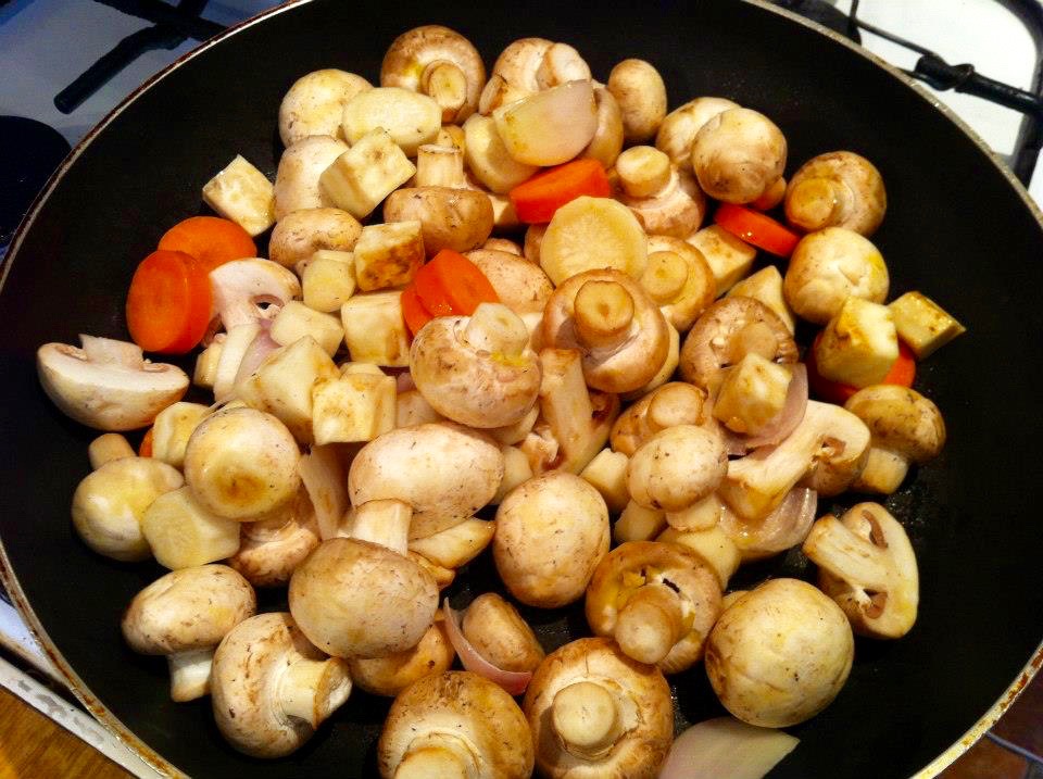 Grzyby: 500 g pieczarek (średniej wielkości)