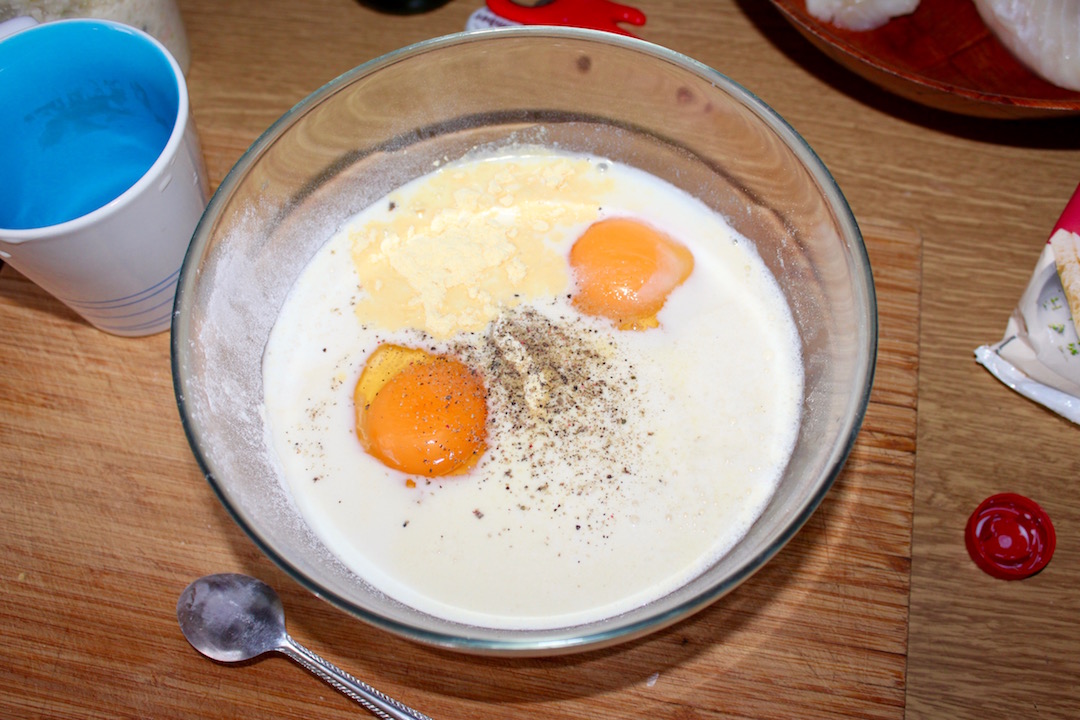 Dodatki: 3 łyżeczki proszku do pieczenia, sól, pieprz;