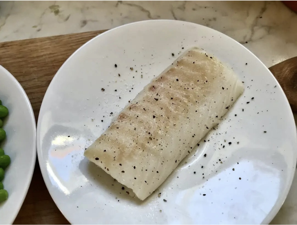 Smażenie ryby: Umyj i osusz polędwicę z dorsza. Posól, popieprz i oprósz mąką, strzepując jej nadmiar. Smaż na średnio rozgrzanej oliwie (powinna zakrywać dno patelni) przez 2–4 minuty z każdej strony. Uważaj, aby ryby nie przesmażyć. Usmażonego dorsza odłóż na ręcznik papierowy.