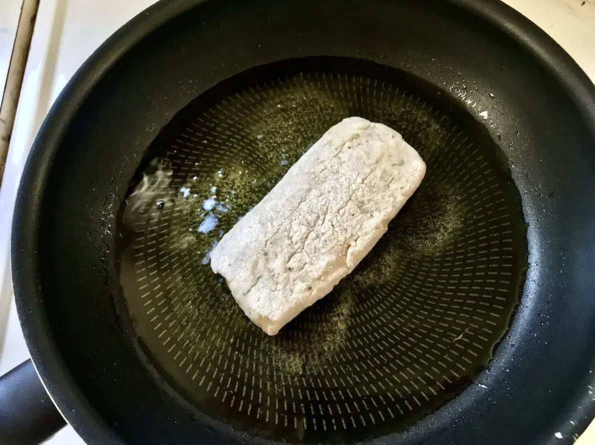 Zdejmij patelnię z ognia i odczekaj kilkanaście sekund, aż temperatura oliwy nieco się obniży.