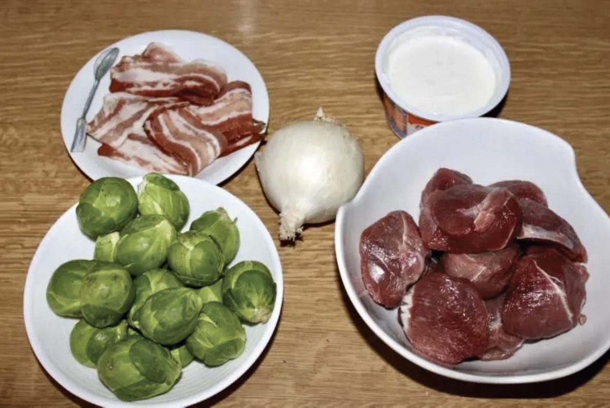 Warzywa: 300 g brukselki, 1 duża cebula.