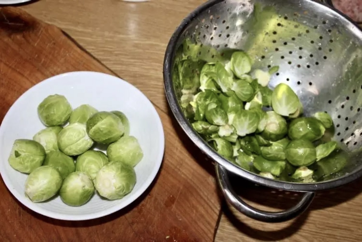 Przygotowanie brukselki: Oderwij wierzchnie liście, odetnij końcówki głąbów, umyj i odsącz. Możesz zachować kilka wierzchnich listków, aby dodać je pod koniec gotowania – zagęszczą sos.