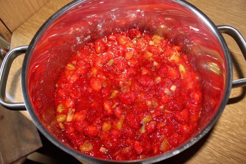 Odpoczynek: Wymieszaj owoce z cukrem, a następnie odstaw garnek na około 4 godziny, aż owoce puszczą sok.