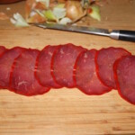 200 g suszonej wołowiny (pastirma, w przypadku braku można spróbować szynki długo dojrzewającej)