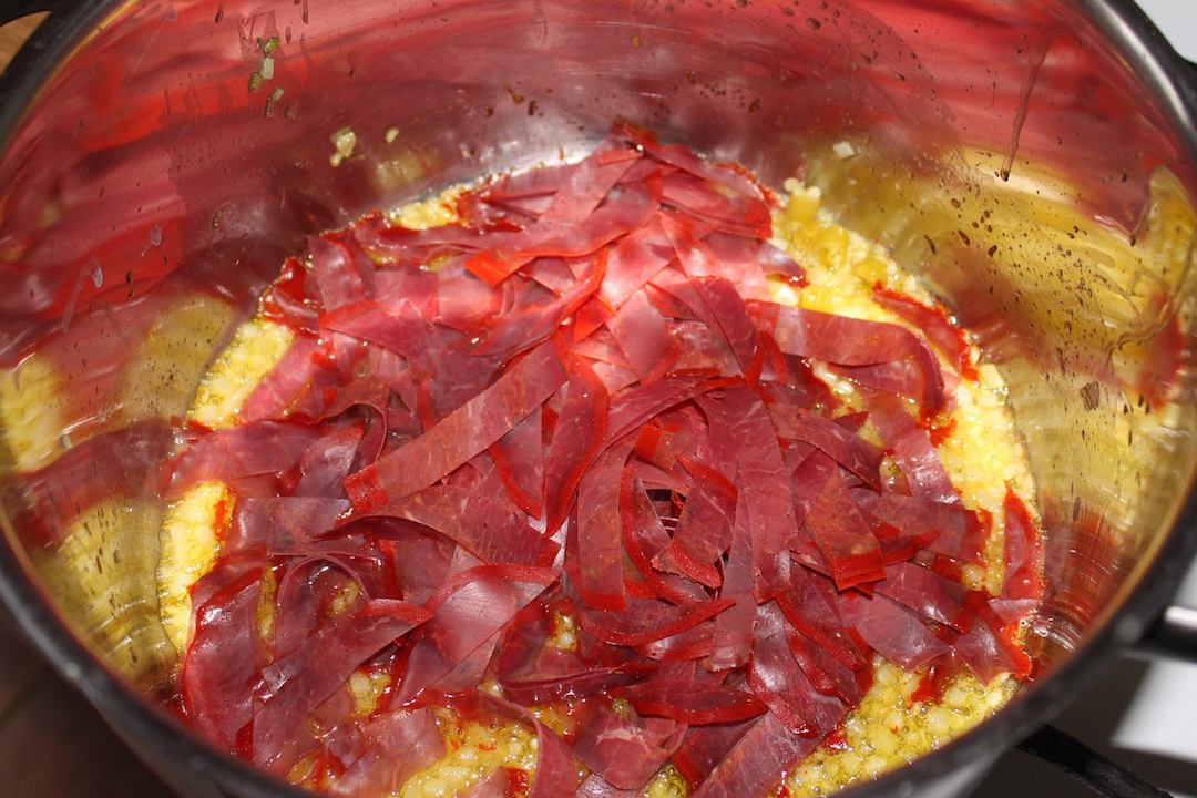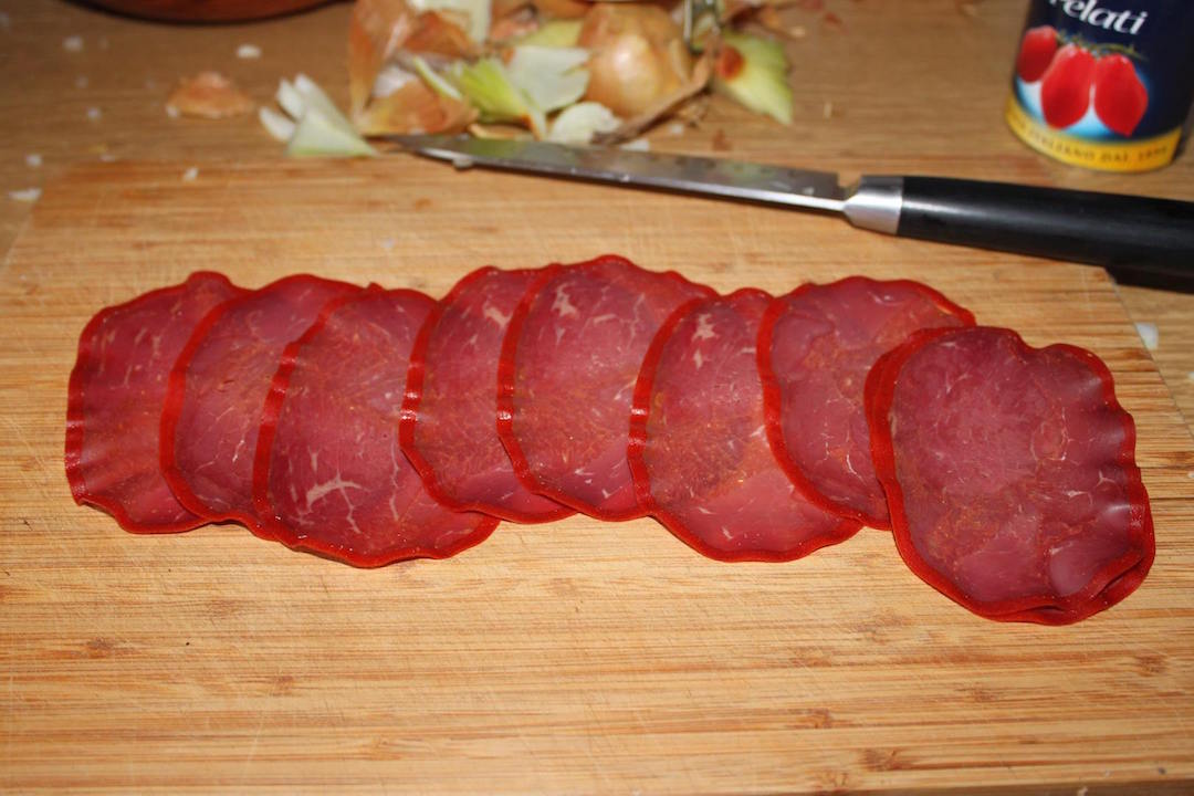 200 g suszonej wołowiny (pastirma, w przypadku braku można spróbować szynki długo dojrzewającej)
