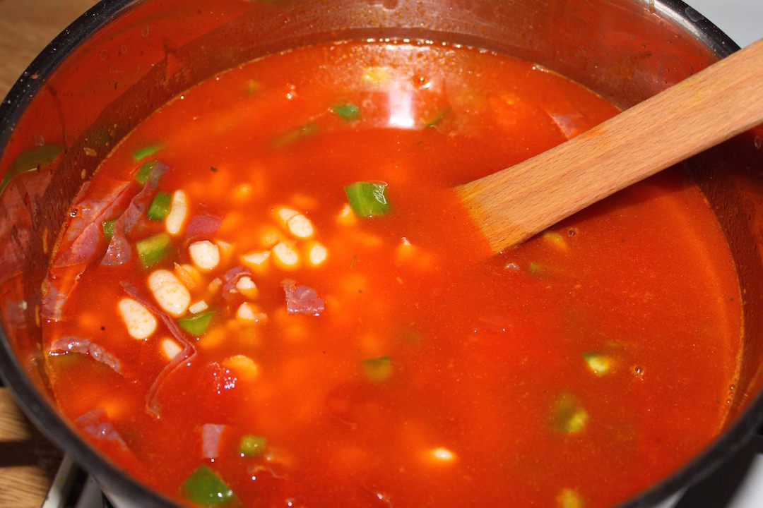 Zagotuj całość, po czym zmniejsz ogień i duś fasolkę na wolnym ogniu przez godzinę.