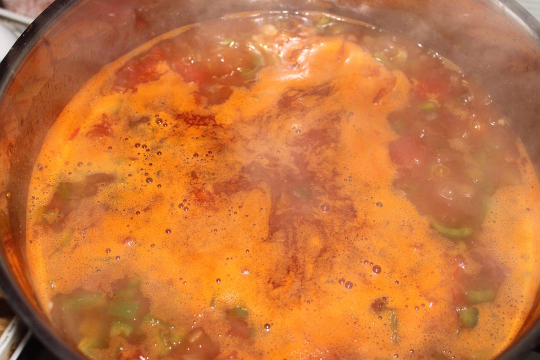 Dolej około 1,2 litra bulionu warzywnego (ilość zależy od tego, jak gęste danie preferujesz).