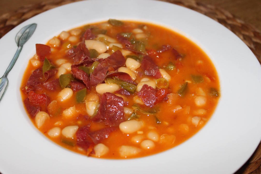 Fasolka duszona na gęsto z dodatkiem papryki, cebuli, czosnku i pomidorów wzbogacona o wołową suszoną wędlinę pastirma. Ta fasolka przyrządzana według niniejszego przepisu to świetna alternatywa dla naszej fasolki po bretoński. To bardzo popularne danie w Turcji z dodatkiem suszonej wołowiny, zwanej pastirmą, która nadaje duszonej fasolce nowego niezwykłego smaku. I tak, jak w przypadku fasolki po bretońsku, najlepsza jest na drugi, a nawet na trzeci dzień. Zdaję sobie sprawę, że będziesz mieć trudność w nabyciu pastirmy. W takim przypadku spróbuj zamiast niej dodać do dania np. szynki długo dojrzewającej. Powinno być również smaczne. W oryginale to danie jest bardzo gęste, ja preferuję jednak wersję rzadszą i na taką przepis podaję.