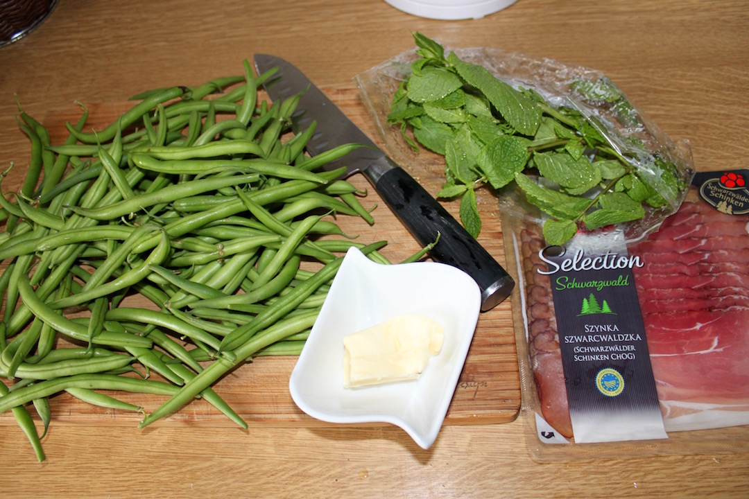 Fasolka szparagowa z szynką to dla mnie połączenie idealne. Nieważne, żółta czy zielona, szparagówka to moje ulubione warzywo. Natomiast aromatyczna, pachnąca mocno dymem z wędzenia szynka szwarcwaldzka to mój faworyt wśród wędlin. Połączenie tych dwóch składników musiało zatem przynieść efekt znakomity. Zwłaszcza, że smak całości wzmocniony został świeżym ziołem i odrobiną czegoś jeszcze. Powiadam Wam, zróbcie sobie, delektujcie się i zachwycajcie się nowym smakiem.