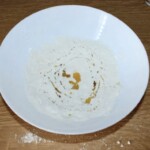 Nakładanie dodatków: Rozsmaruj na cieście crème fraîche. Następnie równomiernie rozłóż piórka cebuli. Całość lekko posól i popieprz (uważaj z solą, ponieważ boczek jest zazwyczaj dość słony). Na koniec rozłóż na wierzchu boczek.
