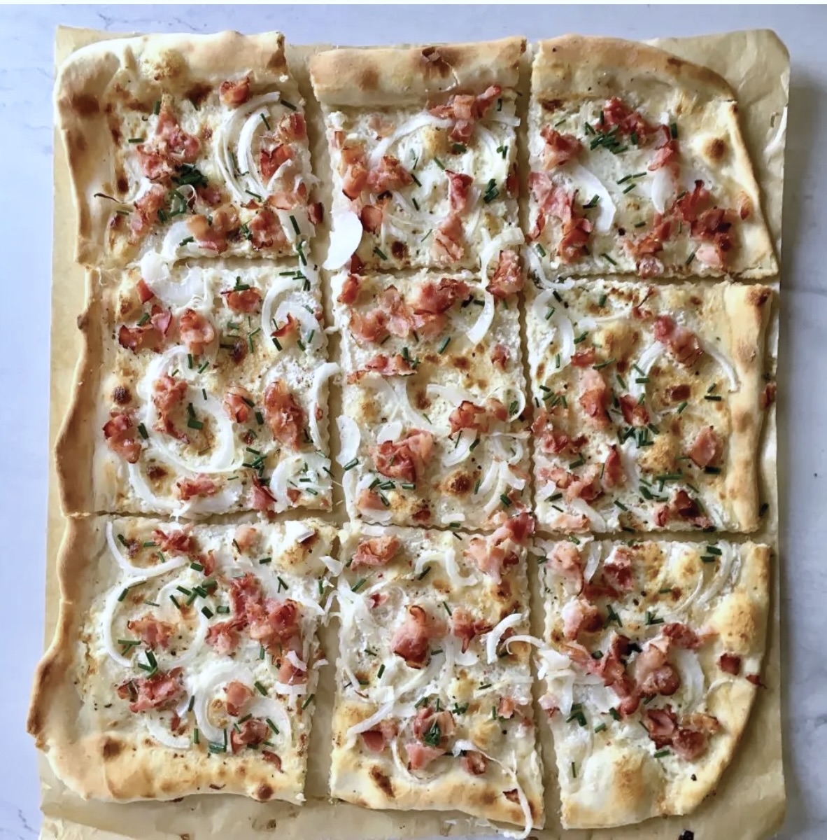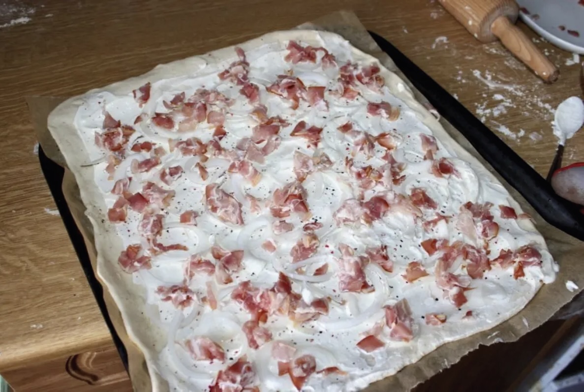 Flammkuchen alzacki (Podpłomyk z boczkiem)