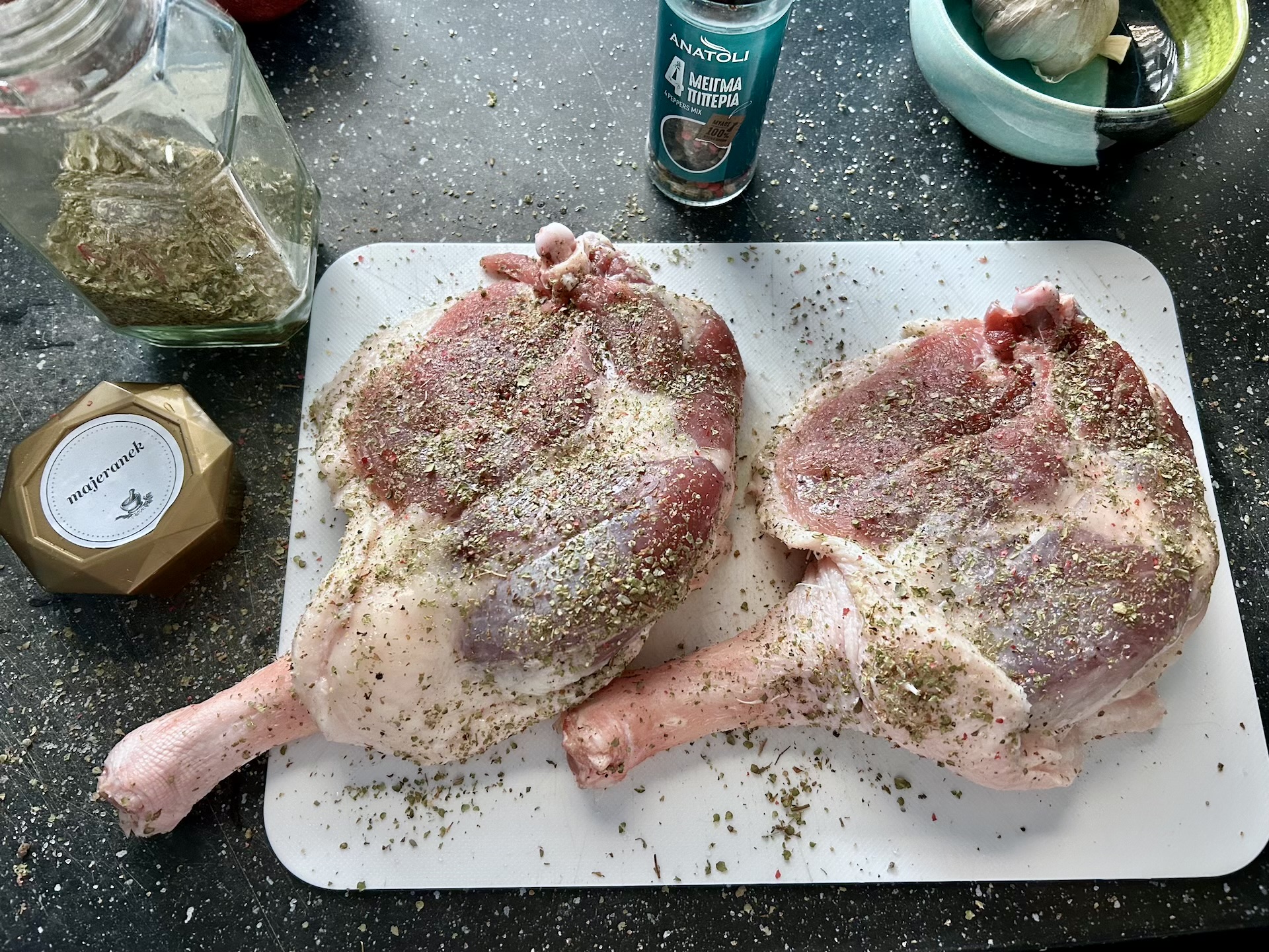 Gęsie nogi pieczone z majerankiem i czosnkiem