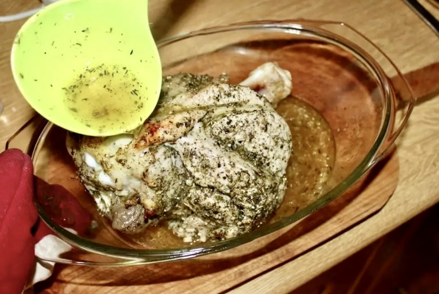 Obracanie: Po 45 minutach obróć mięso na drugą stronę i polej sosem. Piecz kolejne 30 minut. Następnie ponownie obróć, polej sosem i piecz jeszcze 30 minut (łącznie w tej temperaturze 1 godz. 45 min).