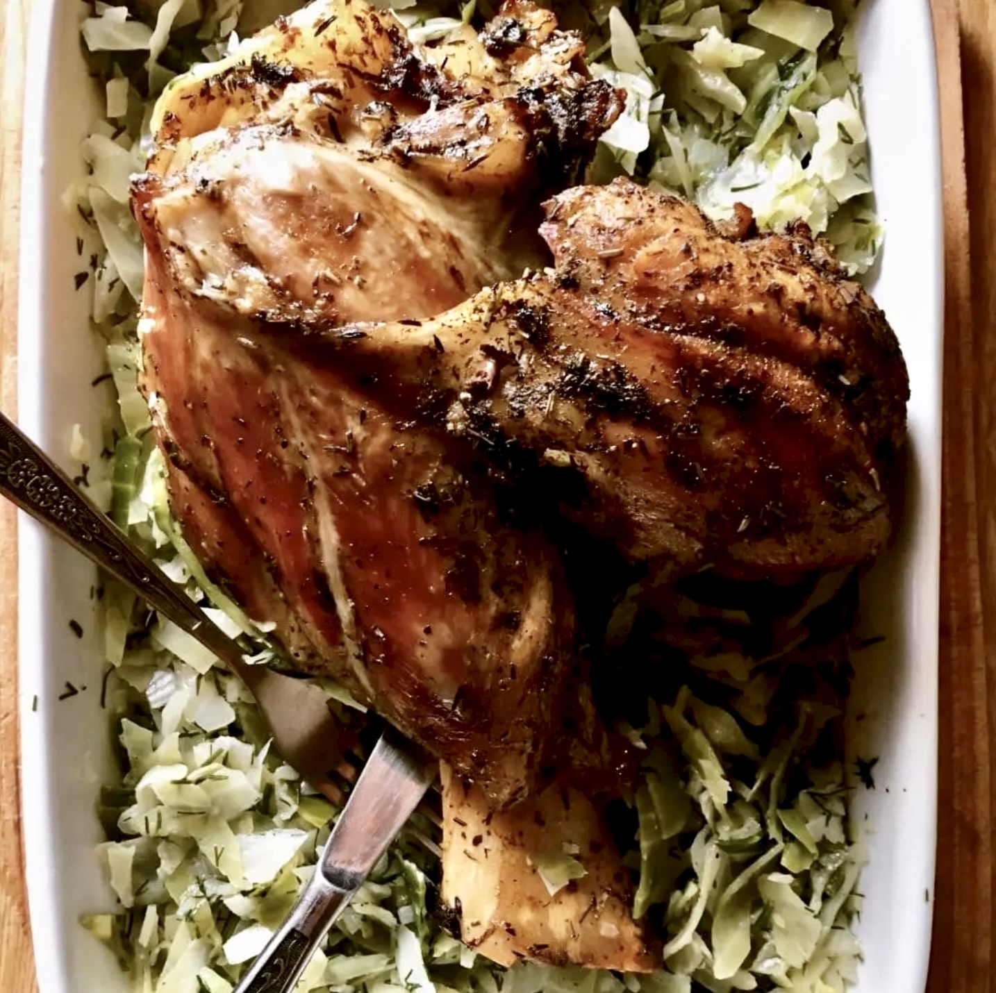 Polecam podawanie tak przygotowanej giczy cielęcej pieczonej z młodą kapustą zasmażaną.