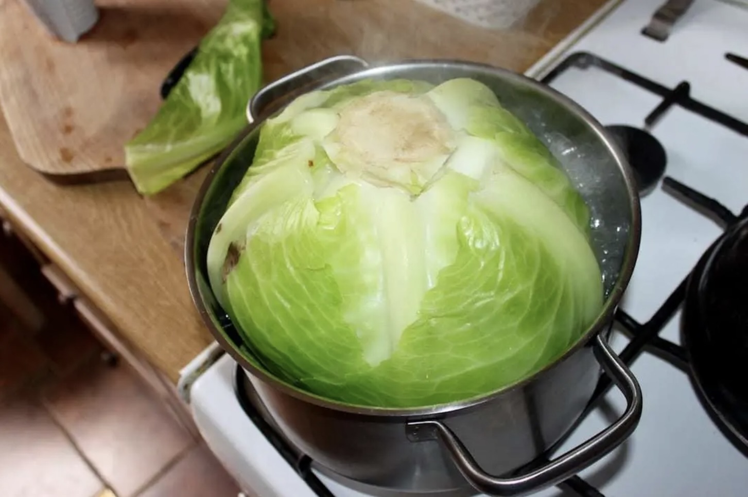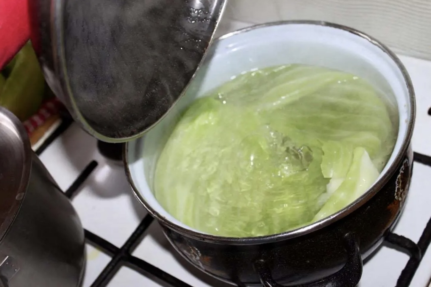 Włóż kapustę do dużego garnka z gotującą się wodą. Obgotuj ją przez kilka minut i ściągaj po kolei wierzchnie liście, starając się ich nie potargać (użyj swojej ulubionej metody blanszowania).
