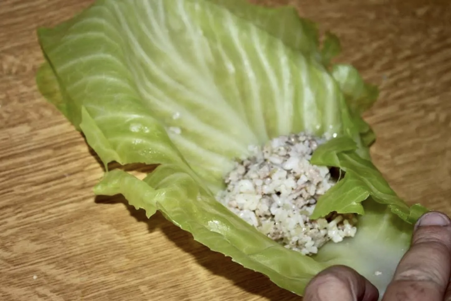 Zwijaj liść kapusty z farszem w gołąbki. Z podanych ilości powinno powstać około 10 gołąbków.