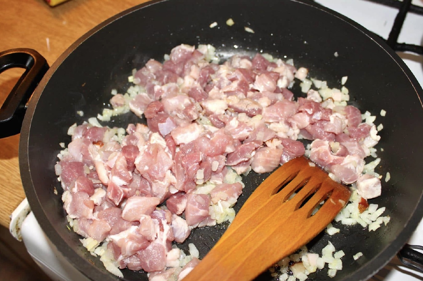 Mięso: 500 g łopatki wieprzowej pokrój w niedużą kostkę.