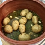 Warzywa: 10 małych ziemniaków do pieczenia, 3-4 garści groszku.