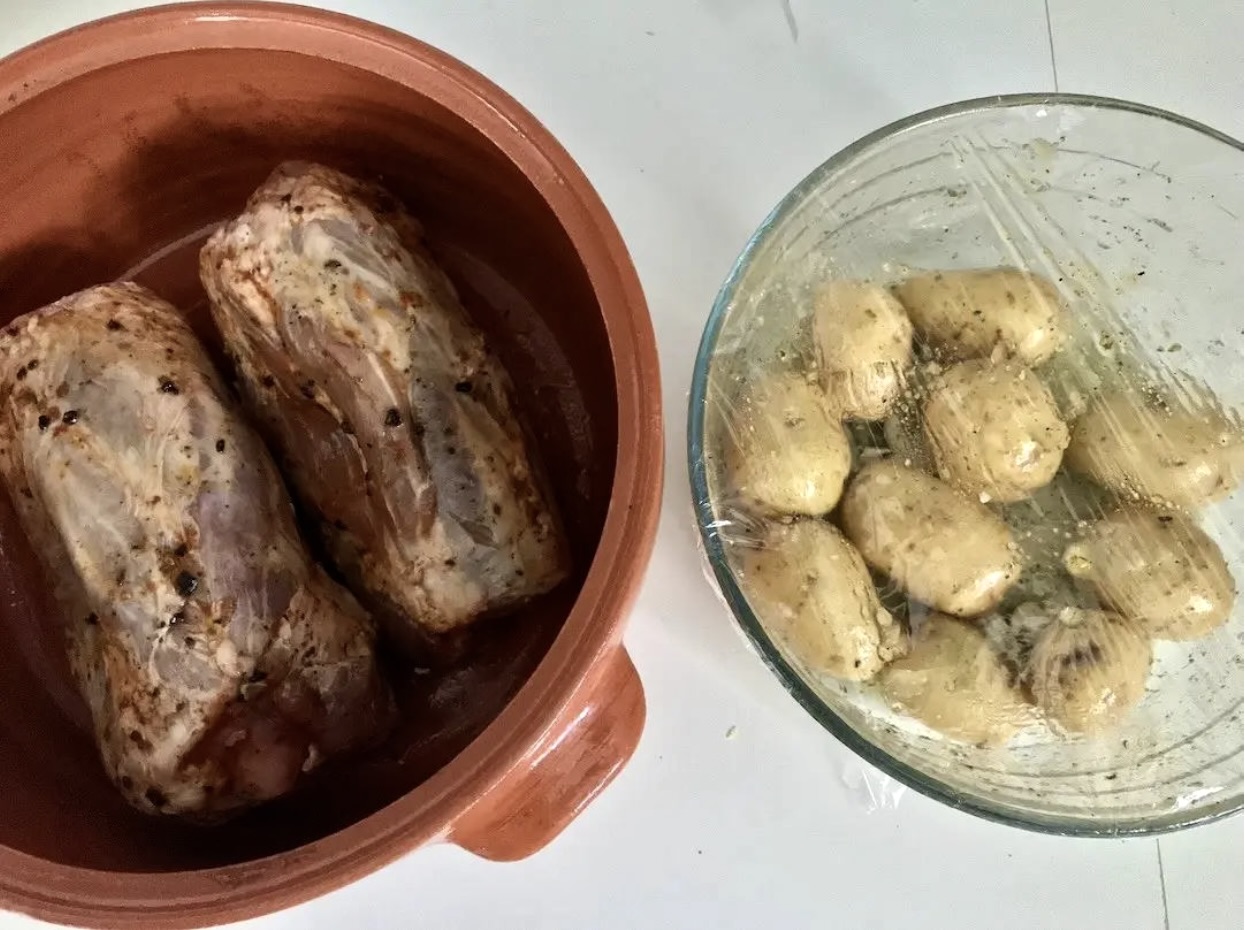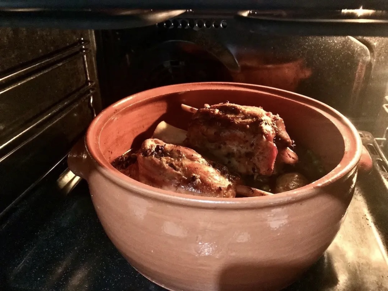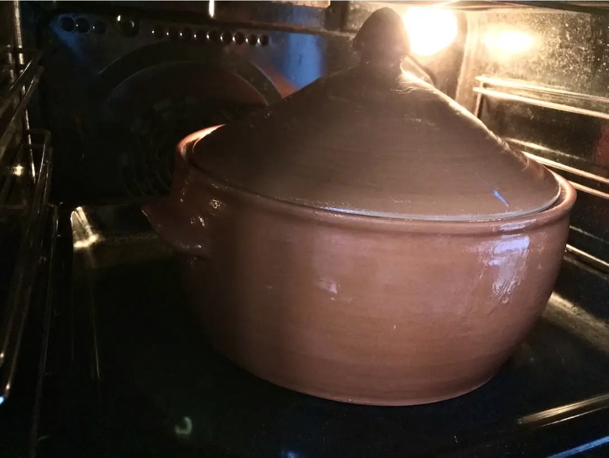 Przykryj naczynie i piecz w piekarniku nagrzanym do 200°C przez 1,5 godziny.