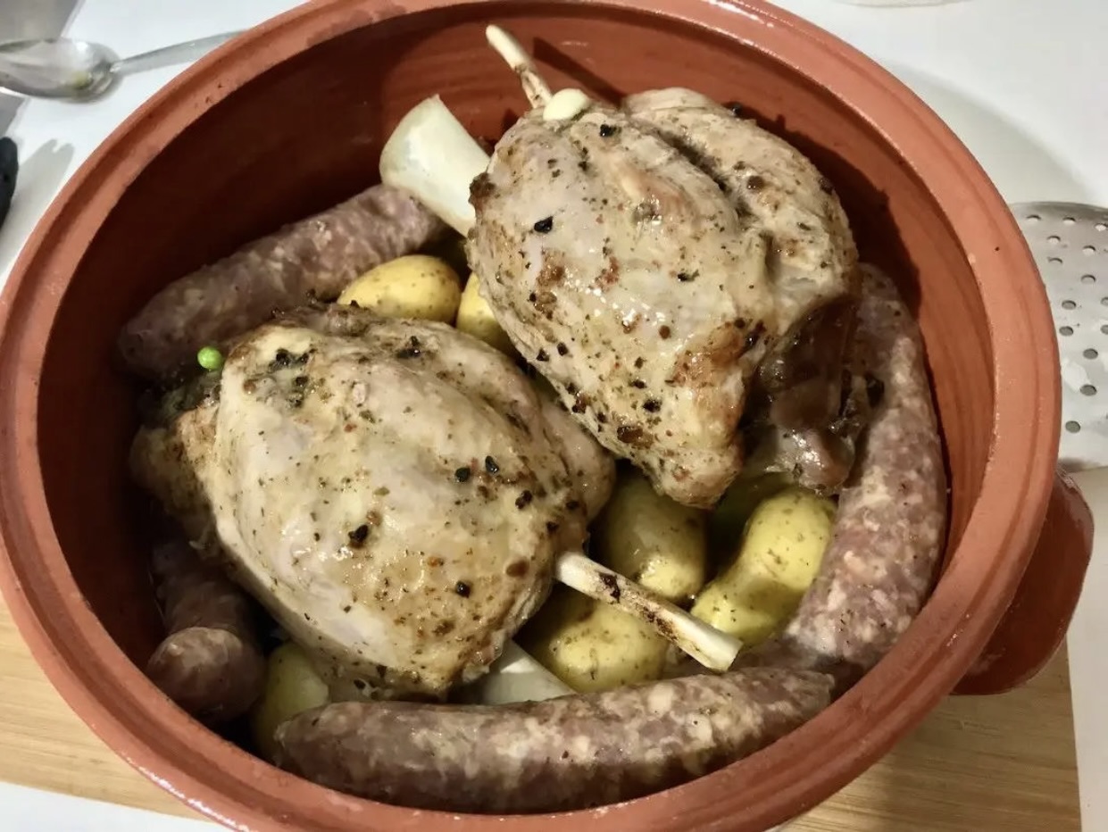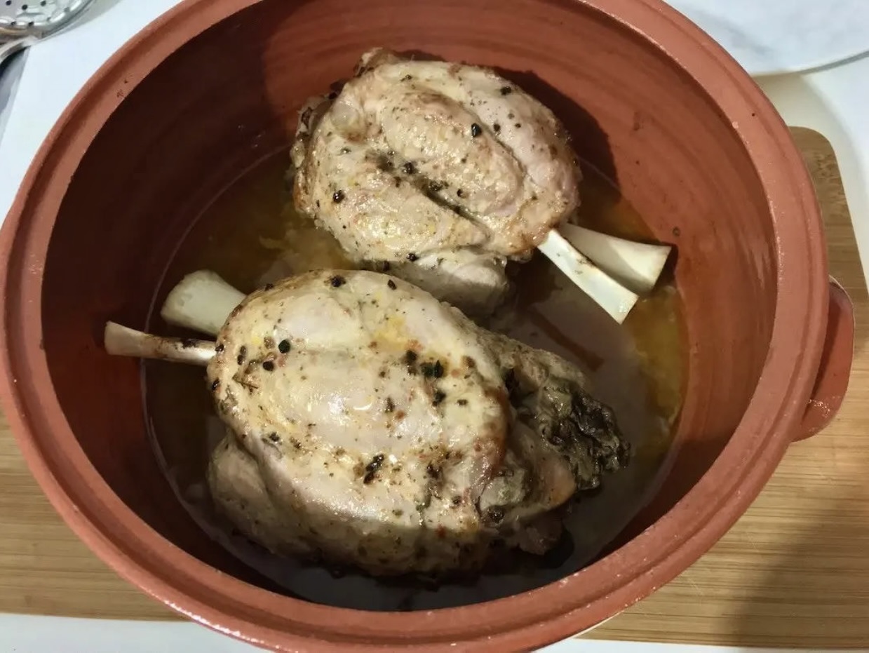 Po 1,5 h wyjmij naczynie, przełóż na chwilę golonkę na talerz.