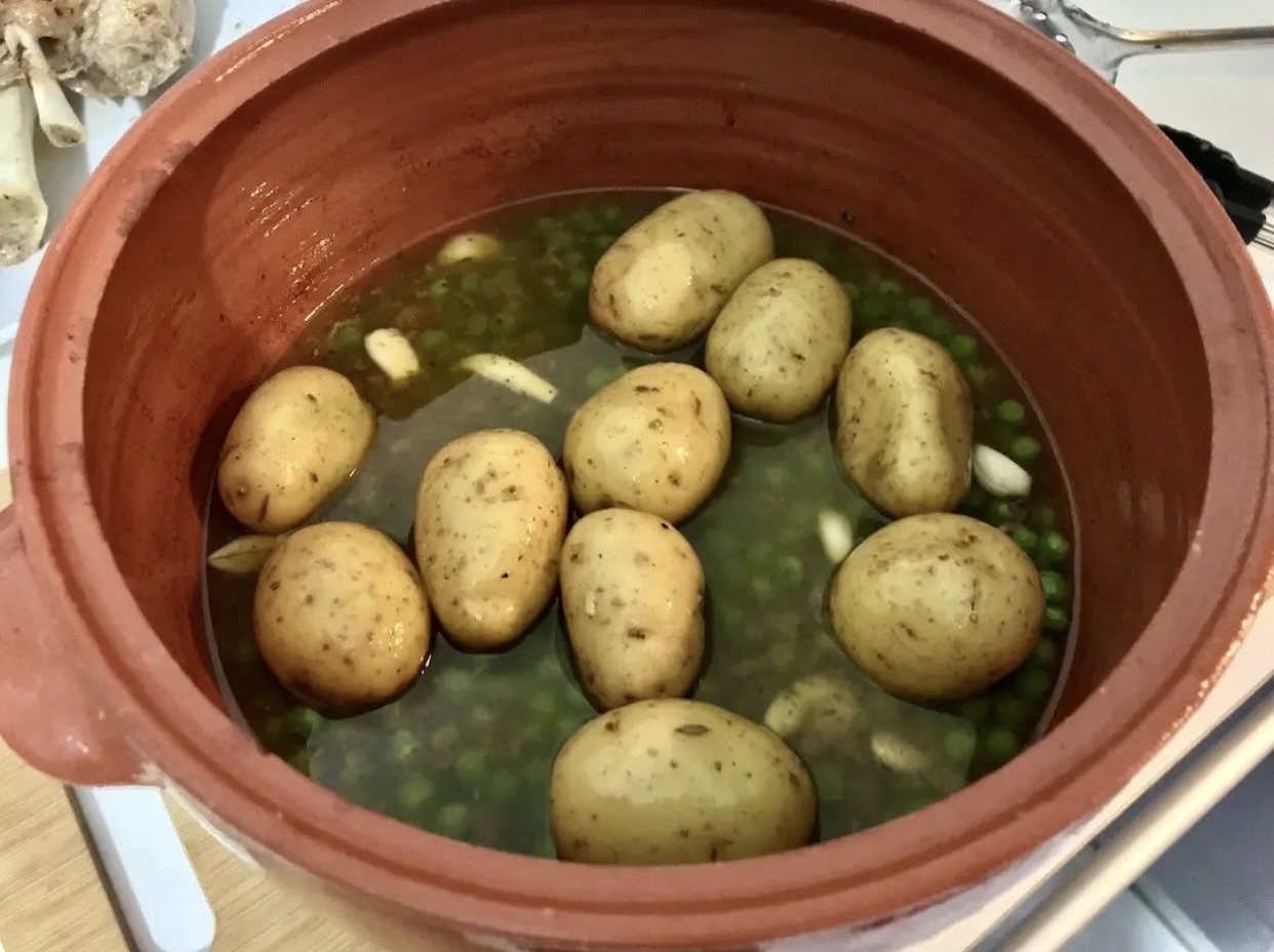 Warzywa: 10 małych ziemniaków do pieczenia, 3-4 garści groszku.