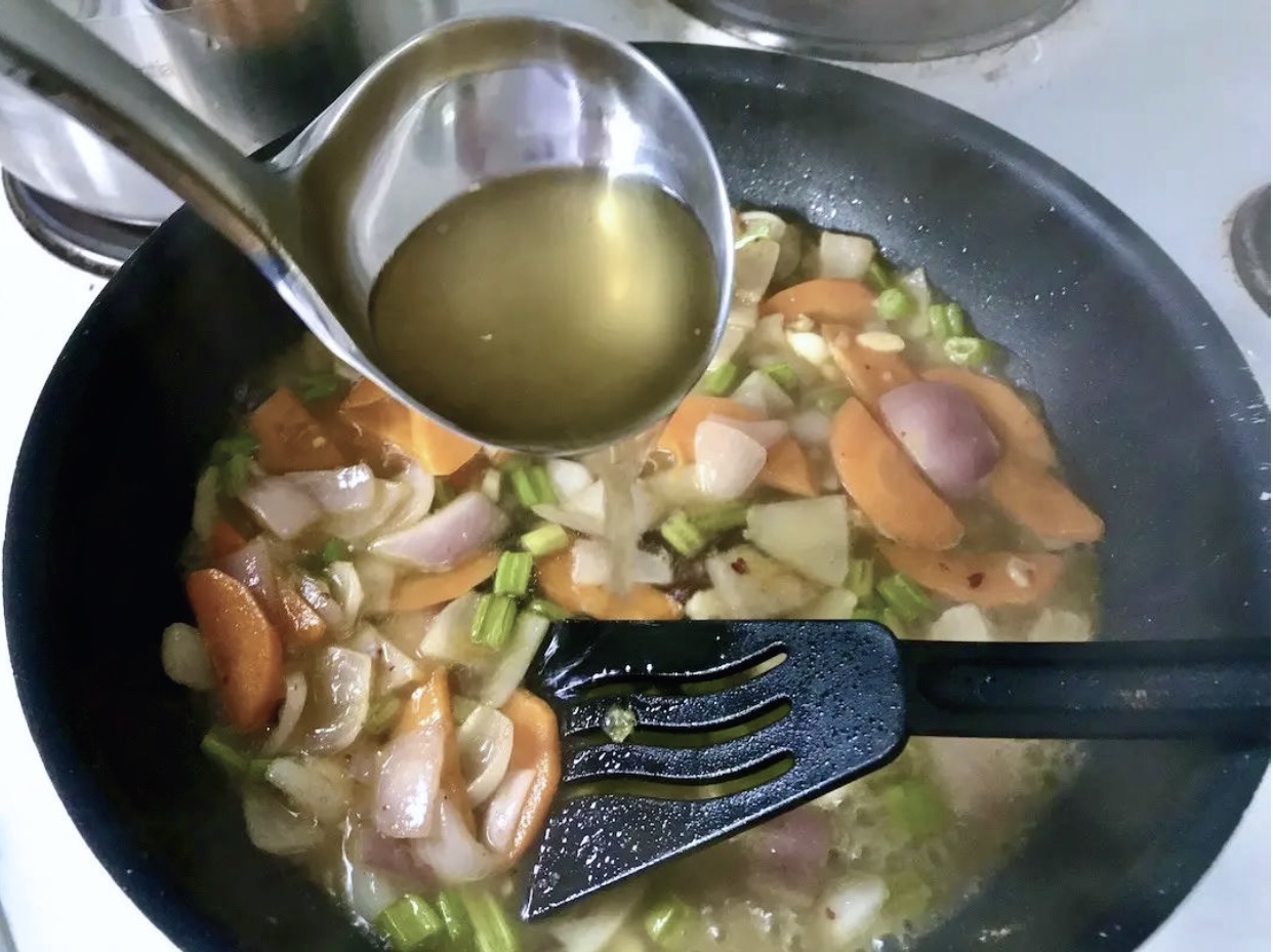 Baza: 750 ml bulionu (jarzynowego dla wegetarian lub drobiowego)
