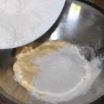 Łączenie składników: Do masy maślanej wsyp przygotowane wcześniej suche składniki i wymieszaj. Następnie dodaj jogurt grecki i ponownie wymieszaj całość.