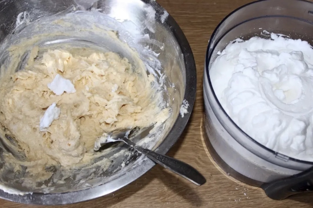 Piana z białek: W osobnej, czystej misce ubij białka ze szczyptą soli na sztywną pianę. Dodaj ją do ciasta i delikatnie wymieszaj (najlepiej łopatką), aby masa nie opadła.