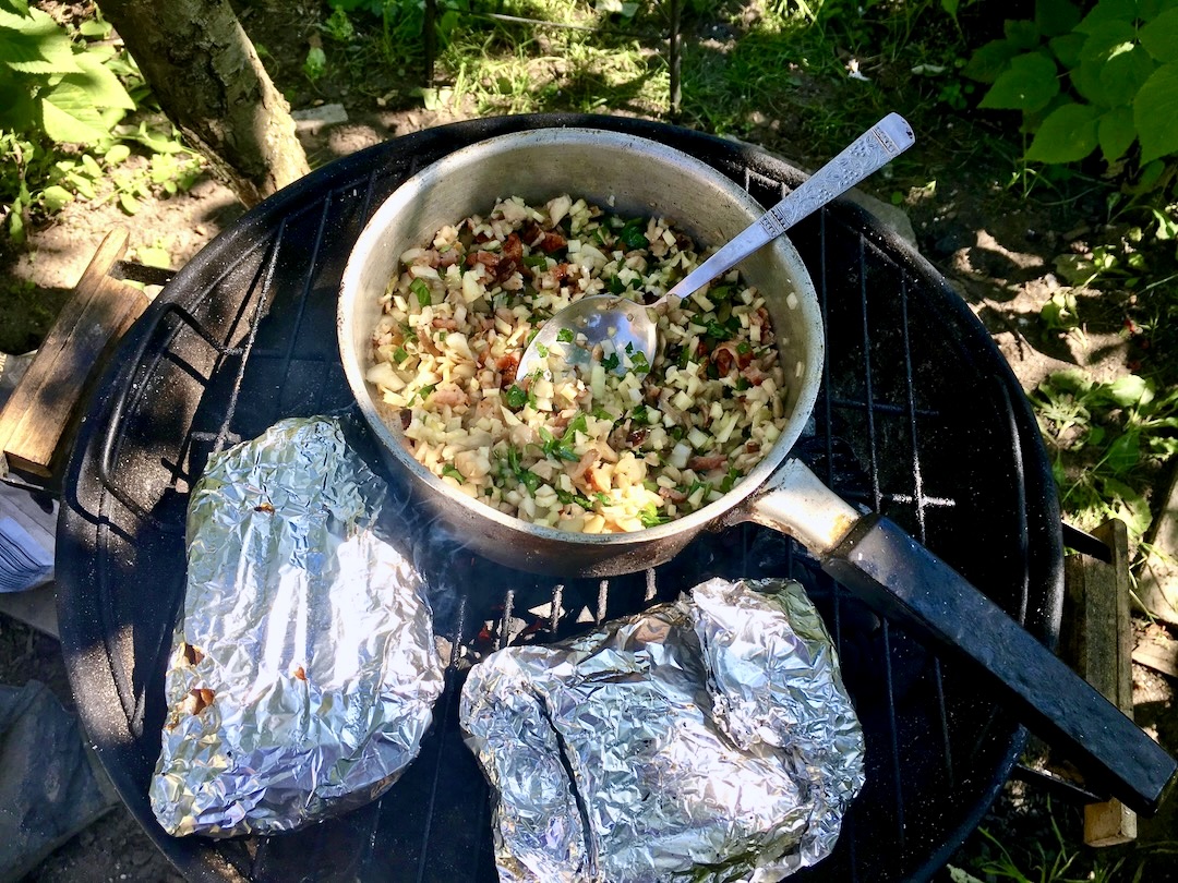 Większość z Was popuka się po głowie, jeśli wspomnę o ziemniakach z rusztu. Pukałem się i ja, kiedy parę lat temu znajomy wrzucił na ruszt kilka młodych małych ziemniaczków. Uprzednio je umyj, osuszył, posolił, a następnie owinął folią aluminiową. Tak przygotowane ziemniaki położył na ruszt i… wszyscy o nich zapomnieliśmy. Ponieważ byliśmy już po małym co nieco więc nie byliśmy głodni. Ziemniaki dochodziły sobie powolutku na wciąż gorącym palenisku. Jakież było moje zaskoczenie, gdy okazało się, że to właśnie tak przygotowane ziemniaki z grilla zrobiły prawdziwa furorę w ten piękny majowy weekend.