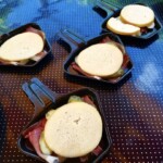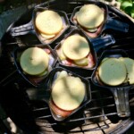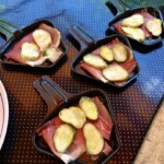 Gdy zatem kręciołki się pieką ja wypełniam minipatelnie. Najpierw plaster aromatycznej szynki szwarcwaldzkiej, potem kilka plasterków ogórków (pikle!), a następnie posiekany ząbek czosnku i na wierzch porządny plaster wędzonego sera górskiego (oscypek, redykołka itp). Kładę na ruszt i czekam z niecierpliwością, aż ser zacznie się topić. Oznaczać to będzie, że przekąska jest gotowa. Szynka szwarcwaldzka uwolniła swoje ziołowe aromaty, pikle studzą słone zapały szynki, a czosnek odstrasza wampiry. I nie tylko. Matko święta, jakie to jest pyszne!