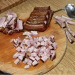 kilka plastrów szynki dojrzewającej (opcjonalnie, można zastąpić surowym wędzonym boczkiem lub inną wędliną)