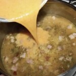 Całą zupę zmiksuj krótko, pulsacyjnie, aby była bardziej aksamitna, ale nadal wyczuwalne były kawałeczki grochu. Uwaga: Na tym etapie zupa jest rzadka, ale zgęstnieje po kilku godzinach, gdy groch napęcznieje.