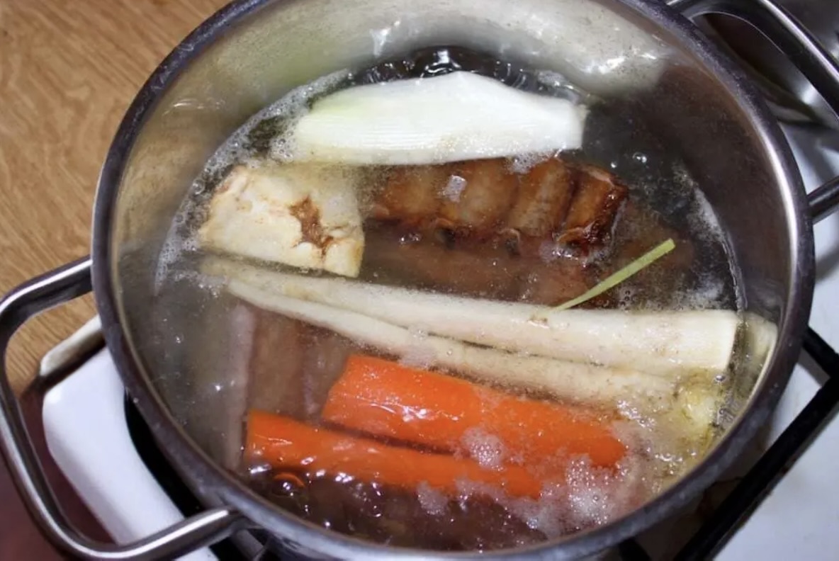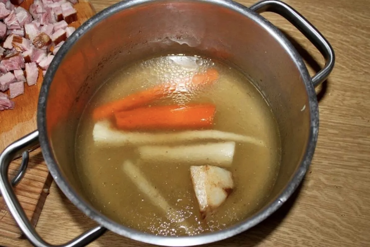 1. Ugotuj wywar z wędzonki na grochówkę