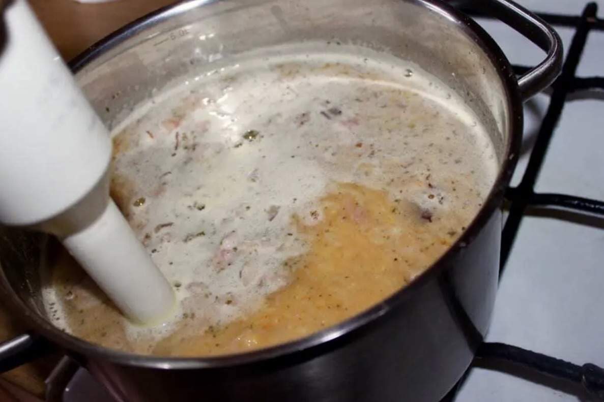 Zmiksowane warzywa z wywarem wlej do zupy.