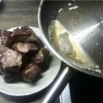Na podgrzany na patelni gęsi smalec (alternatywnie możesz użyć smalec domowy.) wrzuć pokrojone w plastry ziemniaki. Dodaj pieprz a także majeranek i kminek. Smaż chwilę na dość dużym ogniu, aby ziemniaki się lekko zrumieniły. Następnie wrzuć na patelnię cebulę i smaż dalej całość.