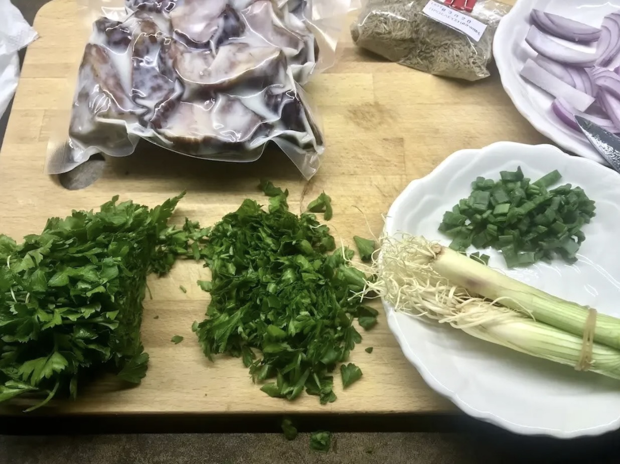 Ziemniaki pokrój w cienkie plasterki. Muszą to być ziemniaki sałatkowe, bo te mączyste rozpadną się podczas krojenia w drobny pył. A nie o to chodzi w tym daniu. Obierz niedużą cebulę i pokrój według własnego uznania. Przygotuj również przyprawy. Potrzebny będzie suszony majeranek, a także kminek mielony lub ziarnisty. Pieprz jest obowiązkowy, a dodanie soli zależeć będzie od tego, jak bardzo słona będzie Twoja wędzonka. Obowiązkową dekoracją dań kuchni austriackiej jest oczywiście szczypiorek. Do GROSTL proponuję również dodać posiekaną natkę pietruszki. Ziół nigdy za wiele.