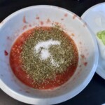 Podczas gdy gulasz się dusi, starte pomidory posól i posyp sporą ilością suszonego oregano. Włóż do nich pokrojoną ostrą paprykę, a następnie wlej 1-2 łyżki oliwy extra vergine.