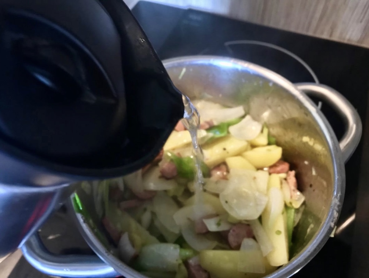 Wlej około 100 ml gorącej wody, przykryj garnek i duś wszystko 5 minut.