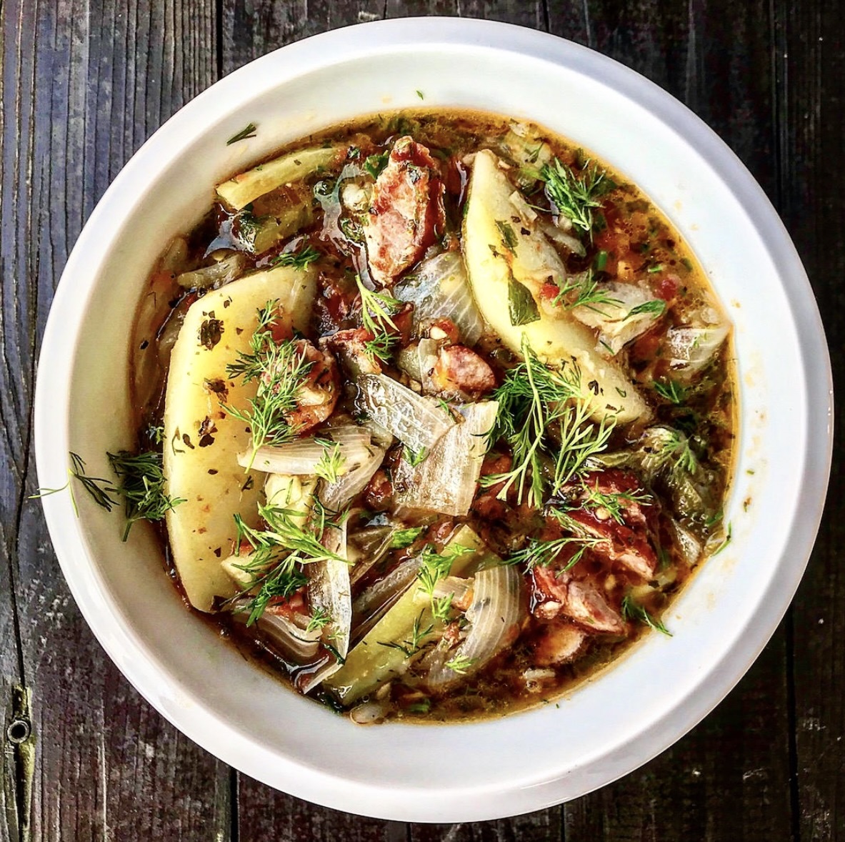 Gulasz warzywny z kiełbasą