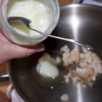 Wytapianie i smażenie: Na dużą patelnię wrzuć pokrojoną słoninę i 2 łyżki smalcu. Gdy słonina się nieco wytopi, dodaj cebulę. Smaż na średnim ogniu, aż cebula się zeszkli (przez kilka minut).