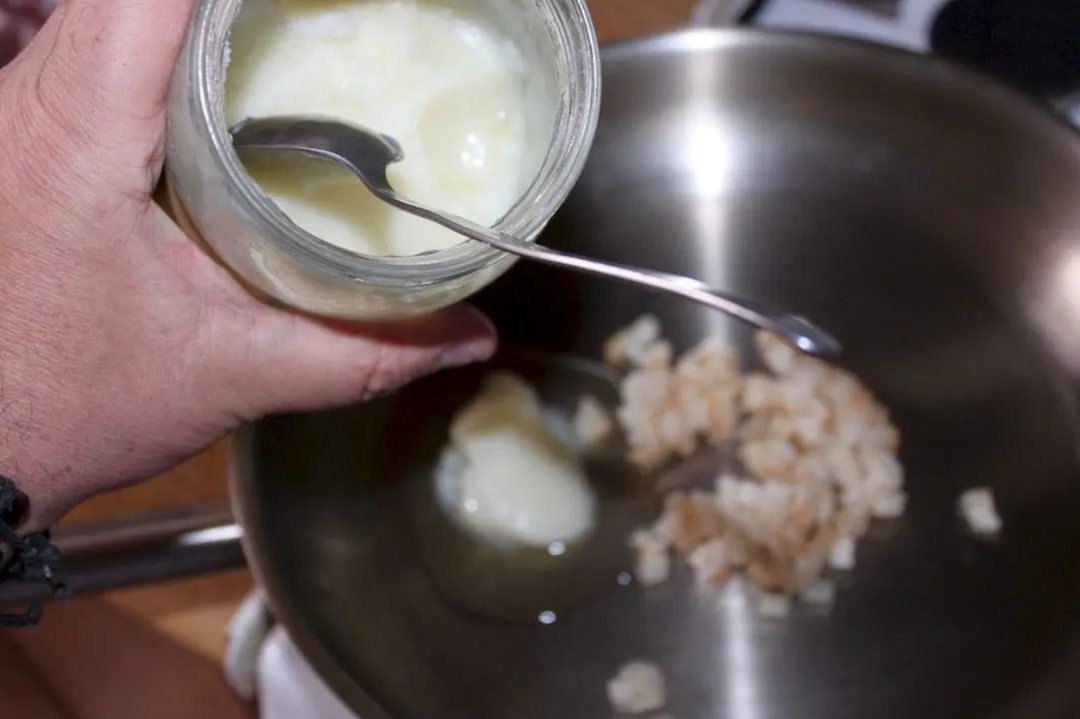 Tłuszcz: Ok. 40 g wędzonej słoniny (najlepiej z mangalicy), 2 łyżki gęsiego lub wieprzowego smalcu (dowiedz się jak upiec gęś i uzyskać gęsi smalec).