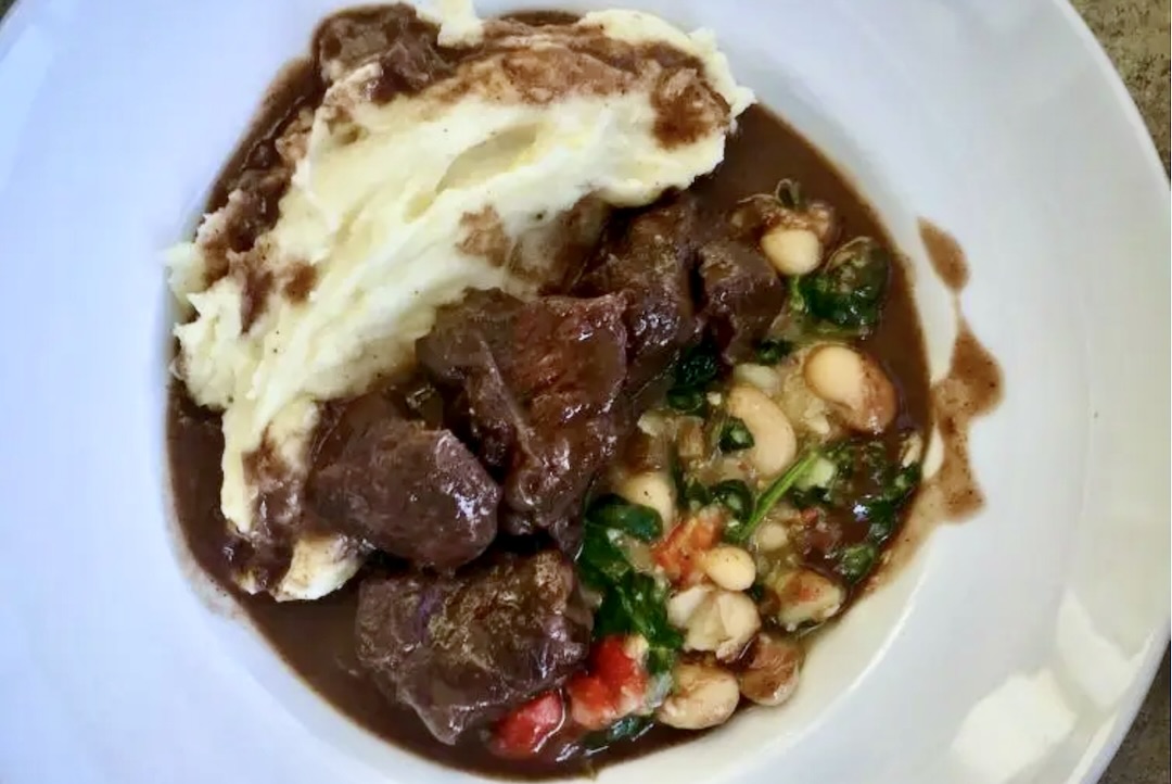Gulasz wołowy najlepiej podawać z polentą, na kromce wiejskiego chleba, z ziemniakami lub z biała fasolka z boczkiem i szpinakiem.