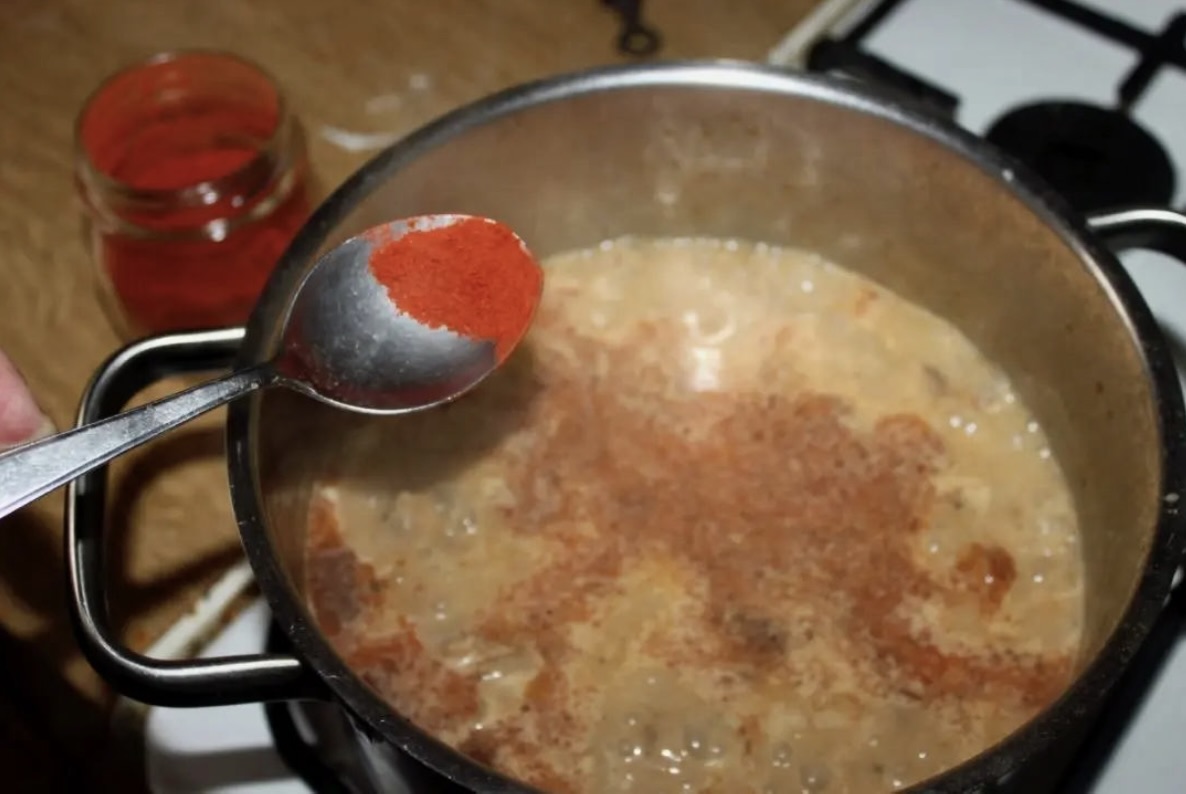 Wykończenie: Na koniec dopraw gulasz pieprzem, czerwoną papryką (dla koloru) oraz ewentualnie przyprawą do drobiu.